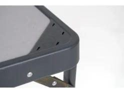 Een lichtgewicht en zeer stabiele vierkantte tafel. Deze campingtafel is voorzien van een hittebestendig en watervast tafelblad en een aluminium frame met stijlvolle grijze poten. De tafel is zeer geschikt als bijzettafel. De campingtafel is eenvoudig en compact te vervoeren.
