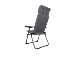 Een extreem compacte standenstoel. De stoel is zeer plat opvouwbaar, slechts 5 cm dik. Daarom wordt deze stoel ook wel gezien als de meest platte kampeerstoel. Deze stoel biedt maximaal comfort door de in 7 standen verstelbare rugleuning en een traploos verstelbare hoofdsteun. Deze stoel is voorzien van een Tex-Comfort stof. Deze comfortabele stof is zeer onderhoudsvriendelijk, bestand tegen verkleuring door de zon en waterafstotend door de open celstructuur. Hierdoor is de stoel veel sneller droog dan stoelen met een traditionele schuimvulling. Daarnaast loopt deze stof volledig om het frame heen. Deze luxe stof wordt aan de achterkant van de zittingsbuis heen geslagen en aan de voorzijde loopt de stof door naar de onderzijde, waardoor een zeer aangename zit is gecreëerd. De stoel is voorzien van een U-frame met stabilisatoren en extra dikke buizen voor extra stevigheid en stabiliteit. Deze stoel is door de inschuifbare hoofdsteun extra compact op te bergen. Tot 50% minder pakvolume in vergelijking met andere kampeerstoelen! De stoel is van hoogstaande kwaliteit met TÜV Keurmerk.