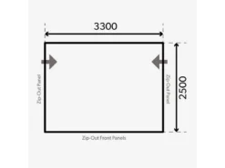Beide zijwanden zijn voorzien van een ventilatieraam dat door middel van een transparante afdekklep, voorzien van ritsen, kan worden afgesloten.