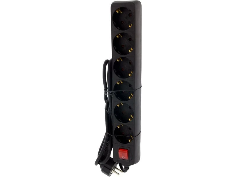 Deze 6 voudige stekkerdoos is een aansluitpunt waarop maximaal 6 electronische apparaten kunnen worden aangesloten op een elektrische energiebron.