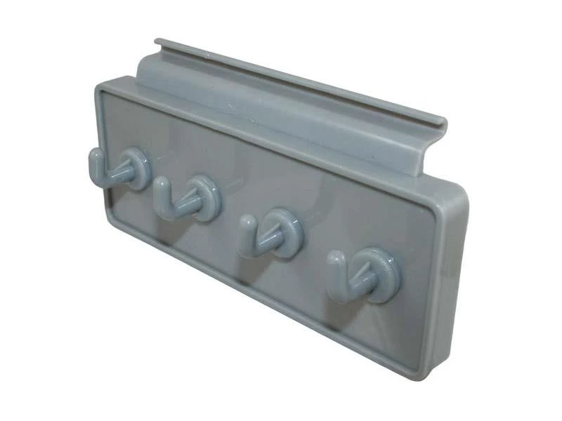 De kunststof kapstok kan eenvoudig in de rail van de caravan worden bevestigd. De 4 haken bieden voldoende ruimte voor uw jassen, theedoeken etc.
