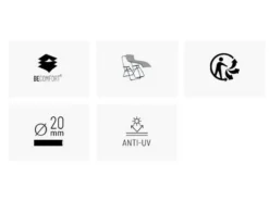 – BeComfort®-kussen: de drie lagen van dit kussen combineren ademende en waterdichte materialen, waardoor het niet alleen comfortabel is, maar tevens goed luchtdoorlatend en sneldrogend.