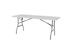 Goed afwasbare tafel, te gebruiken in de tuin, en heel ideaal voor bijvoorbeeld een barbecue. Frame is van staal en het blad is van kunststof.