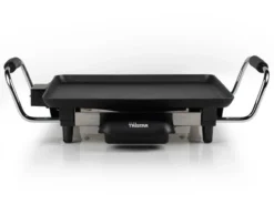 Compacte bakplaat (28 x 28 cm) speciaal geschikt voor op vakantie (800W). Met Cooltouch handgrepen voor gemakkelijk vastpakken, een instelbare temperatuur tot 250° C en handige vetopvangbak. Gezellige avonden gegarandeerd!