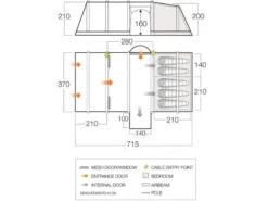 Kabelopening- Mooi afgewerkte opening voor de voeding naar de tent zodat u uw apparaten kunt opladen in de tent